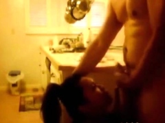 indonesian Maid sucking her white master dick in kitchen