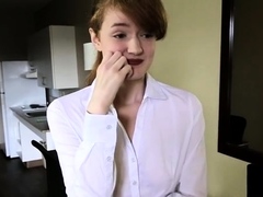 Adorable redhead floosy Abbey Rain brought to orgasm